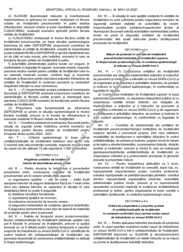 Vezi mai jos Ordinul din Monitorul Oficial