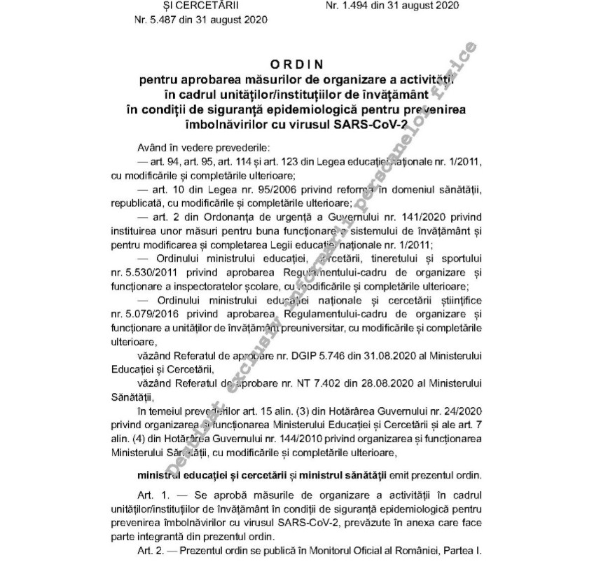 Citiți și: ULTIMA ORĂ Ministrul Sănătății a semnat ordinul cu măsurile pentru școli/ Ce conține documentul