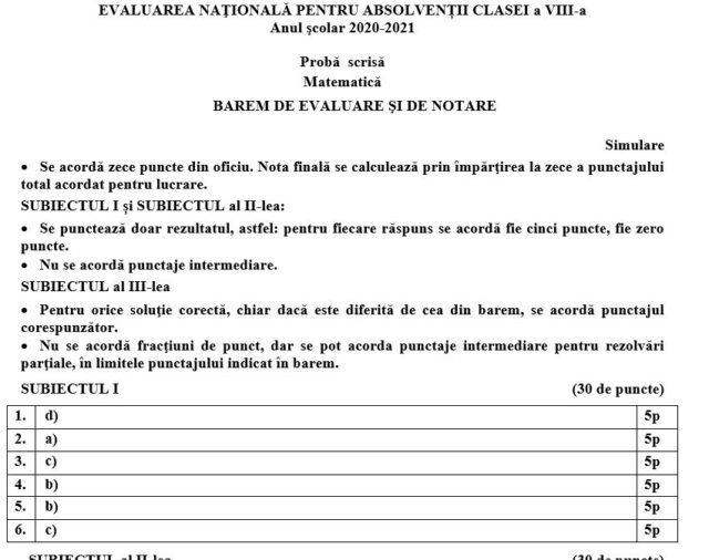 Descarcă de aici Barem Subiecte Matematică Evaluare Națională 2021